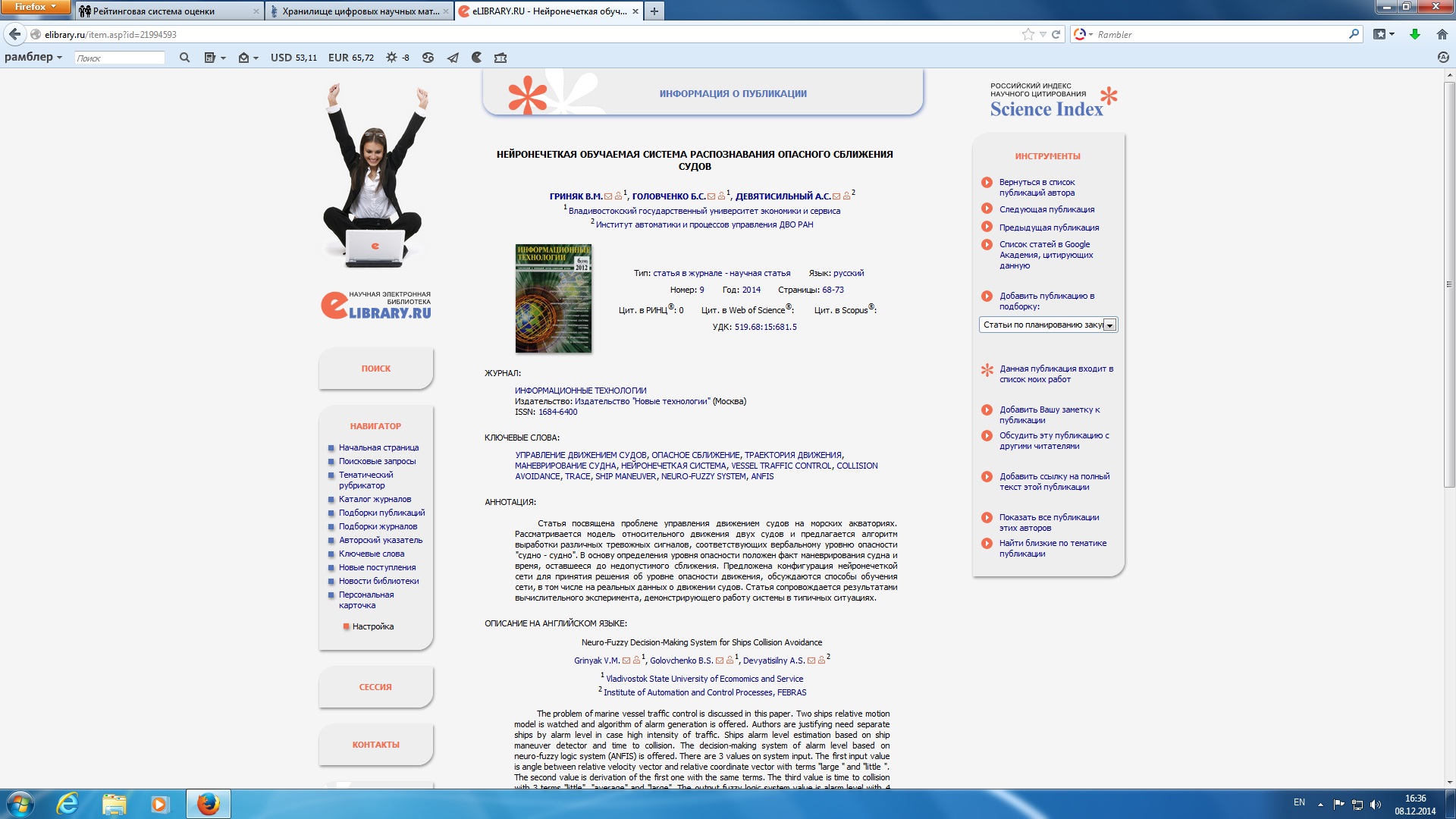 Нейронечеткая обучаемая система распознавания опасного сближения судов